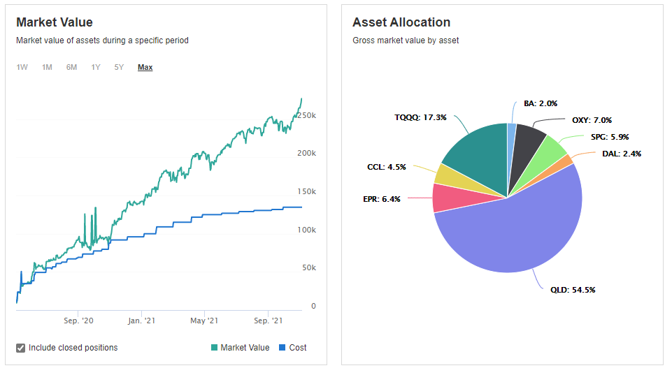 풀 러베리지로 QLD/TQQQ를 매수 했었던 이유는 투자를 시작했을 당시가 코로나로 회복되는 초기였기 때문에 무조건 오른다는 믿음이 있었고, 큰 돈이 들어가야하는 상황이 없었기 때문이다. 요즘은 지수가 역대 최고를 갱신하고 있고, 테이퍼링/기준금리 상승 등 유동성 긴축에 대한 이야기가 나오고 있는 상황이므로 지금 풀 레버리지로 매수할 수 있냐고 물으면 나는 못한다고 답할 것 같다.