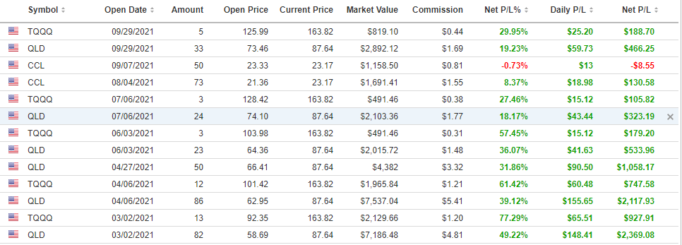 8월/9월은 CCL을 샀고, 10월은 QLD/TQQQ를 샀었다. 이번달은 DAL을 살까 싶다. 주변에 여행가려고 벼르고있는 사람이 너무 많다.
