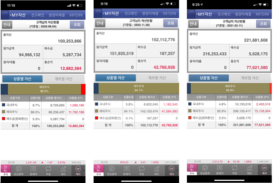 자산변화 - 2020.08 / 2020.11.26 / 2021.03.11