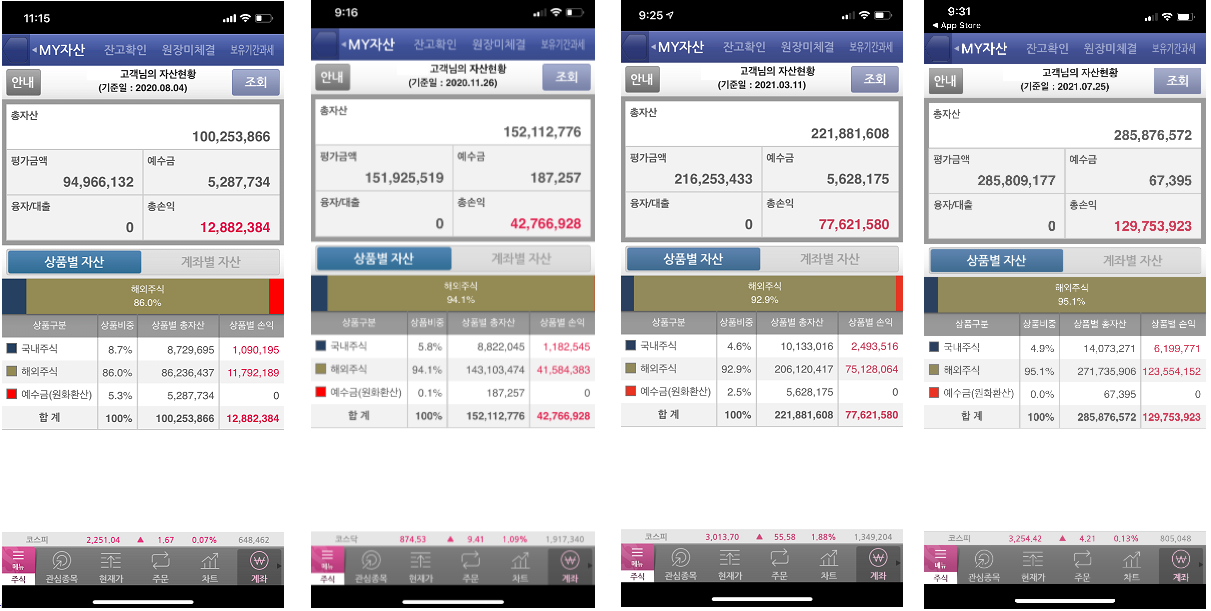 월급이 들어오는대로 추가매수를 진행 해서 자산이 늘어난 것도 있지만, 약 4개월 동안 총 주식으로 자산 이득이 3000만원 늘었기 때문에 괄목할만한 성과라고 생각한다.